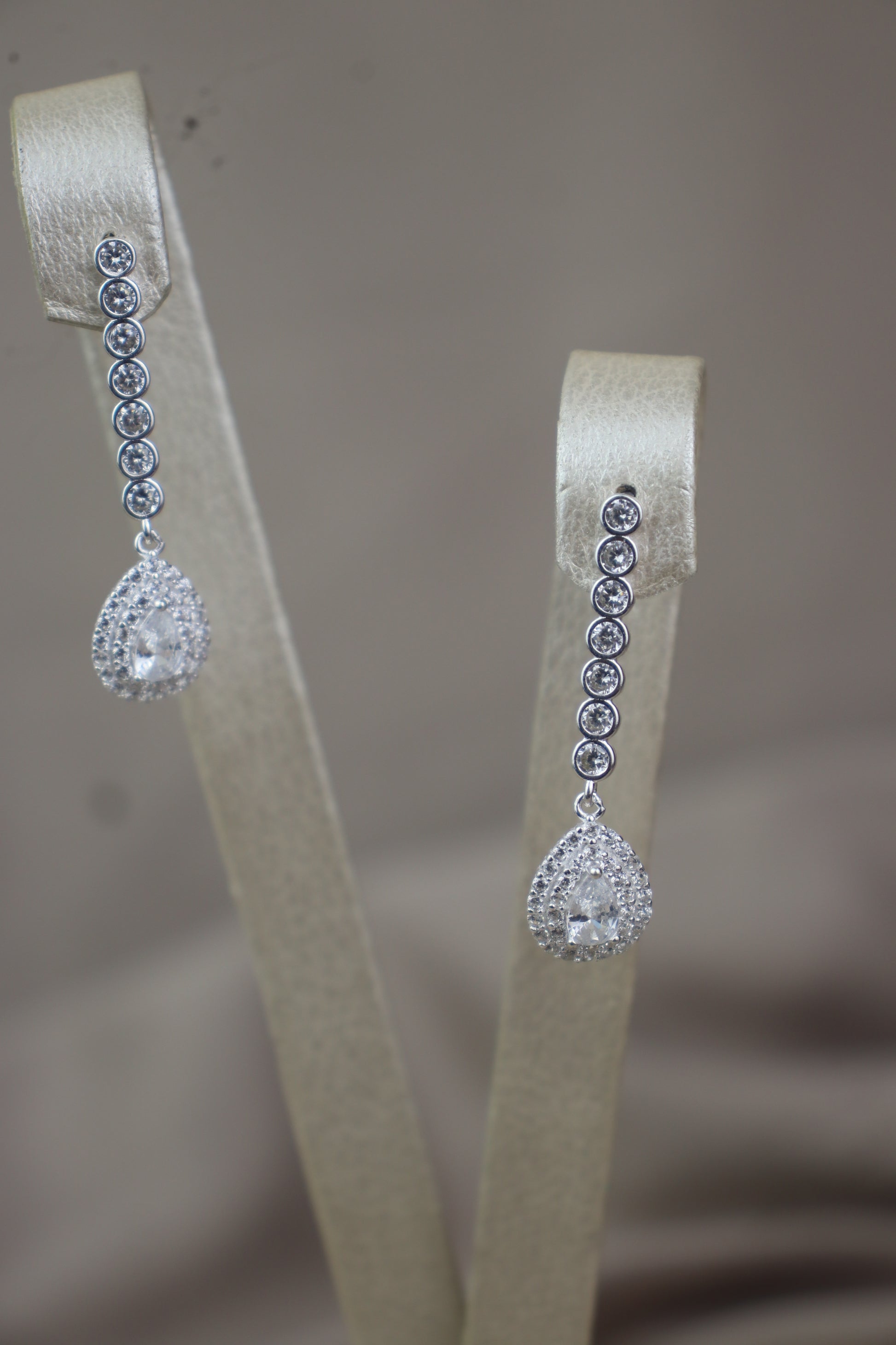 Aretes largos con piedra corte de gota al final en plata 925 italiana y circones blancos