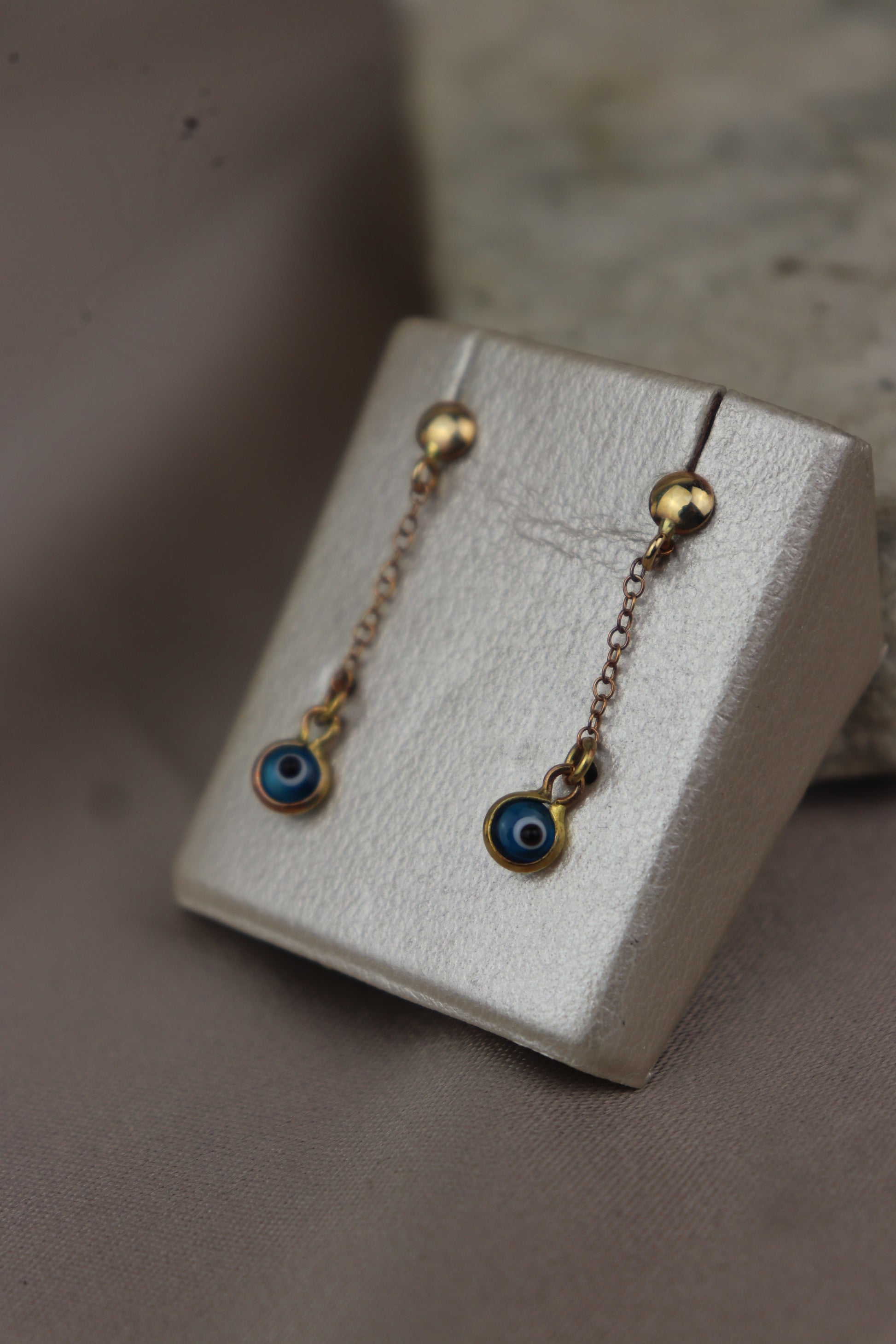Aretes colgantes con ojito turco en oro de 18k