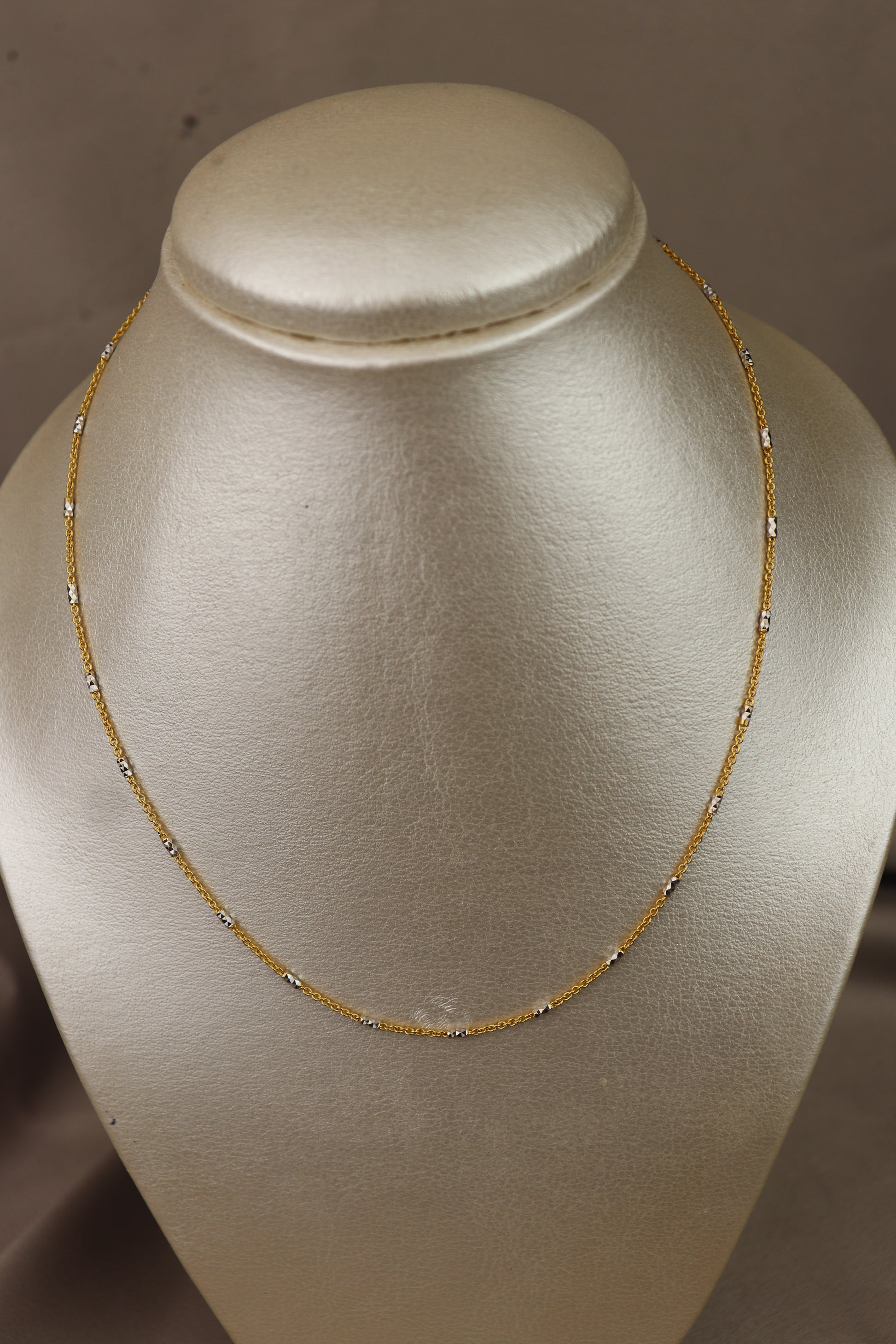 Cadena tejido rolo con canutillos en oro blanco de 18k. Medidas 40cm de largo