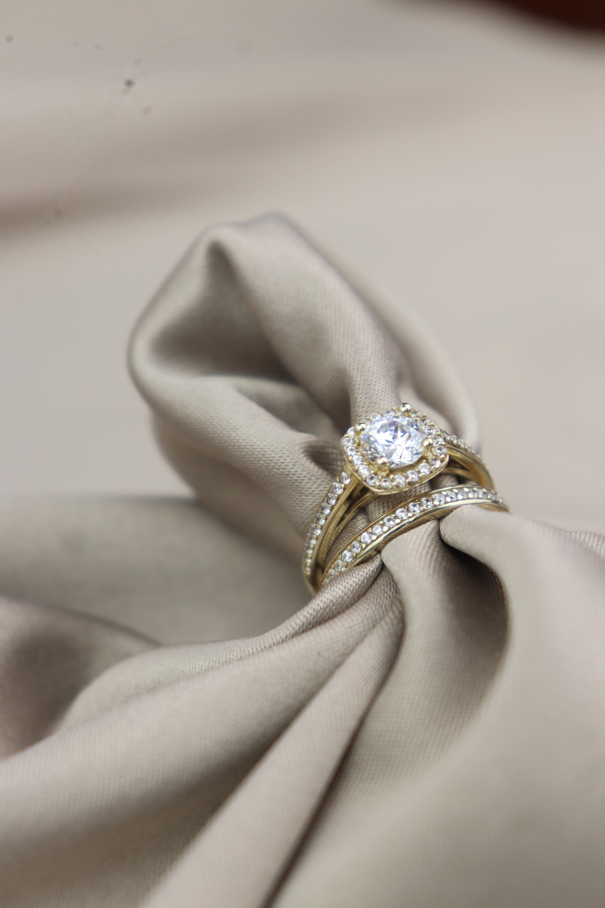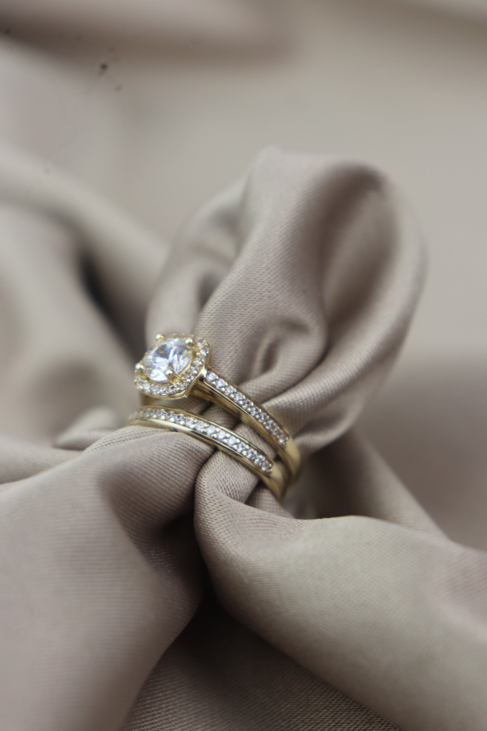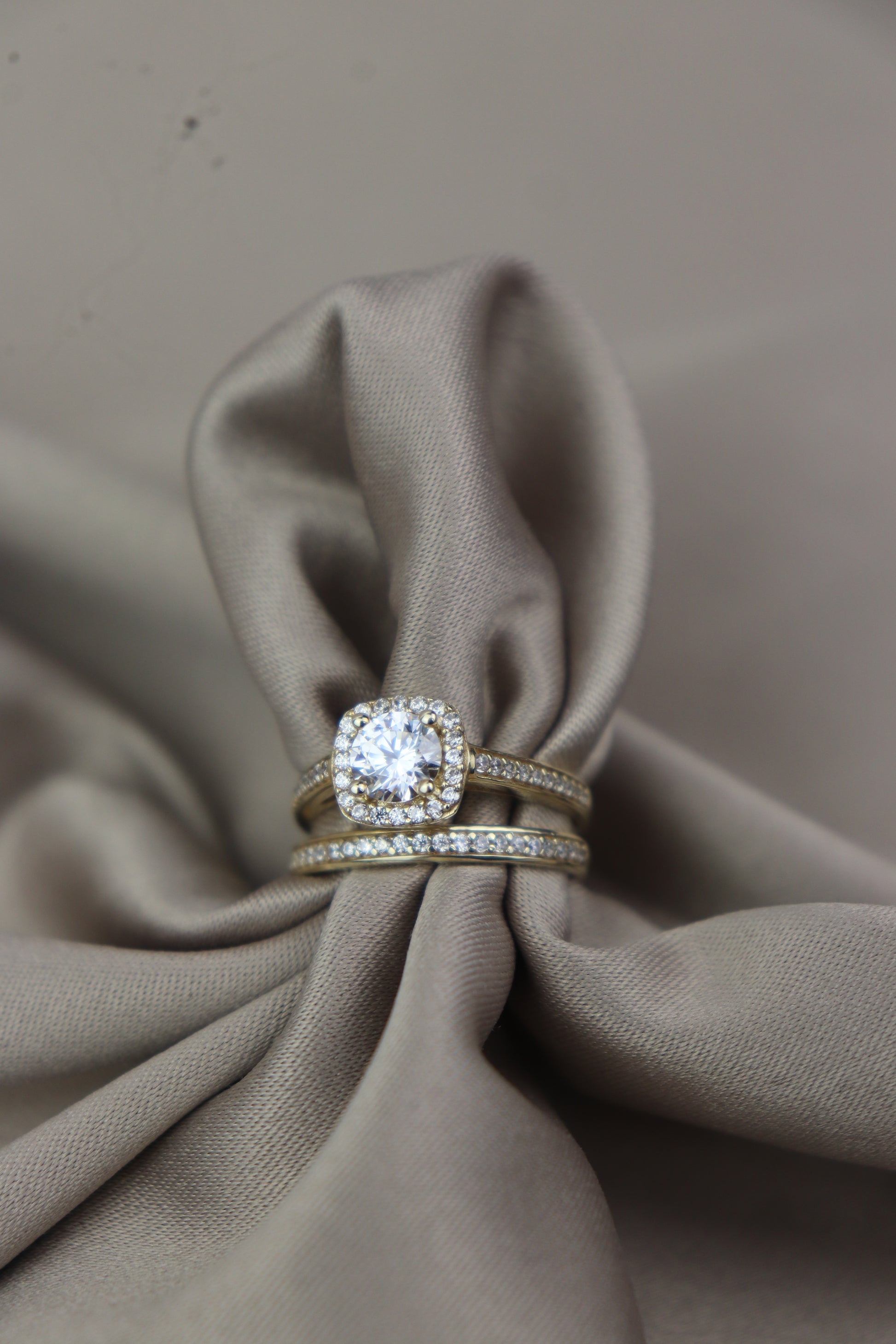 Duo de dama en oro de 10k amarillo con montura cuadrada