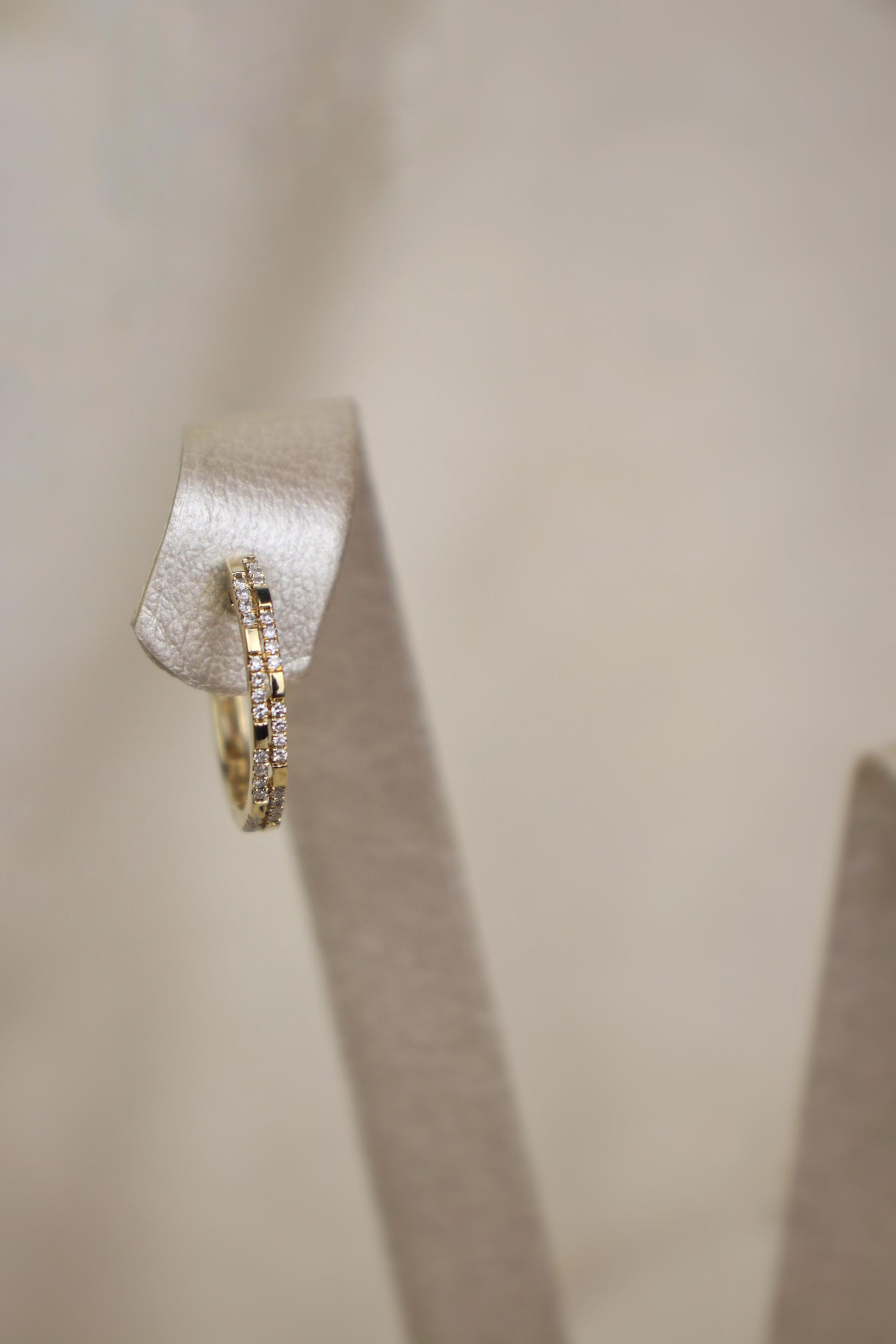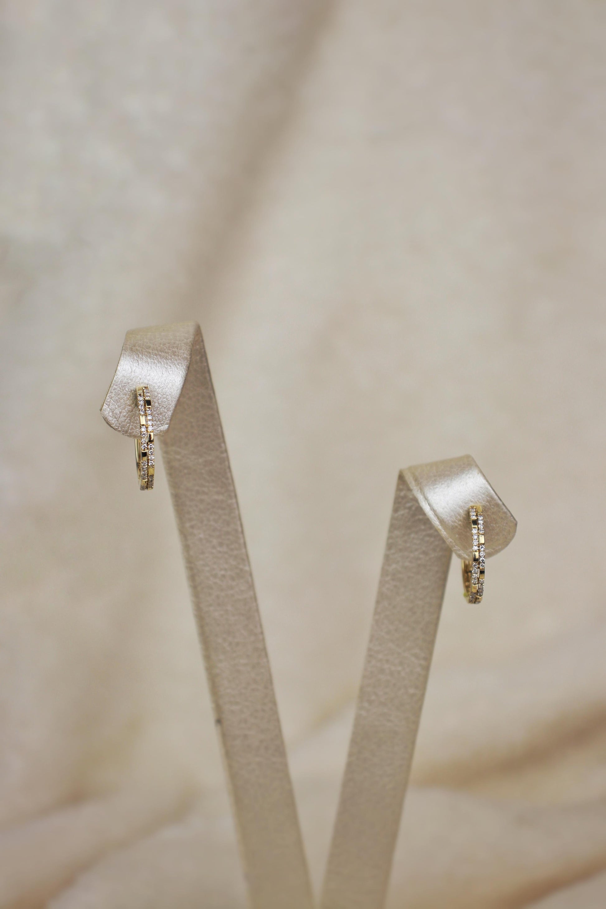 Un diseño clásico con un toque de brillo. Estos huggies en oro amarillo de 14K están adornados con diamantes, ideales para un look sofisticado y diario.